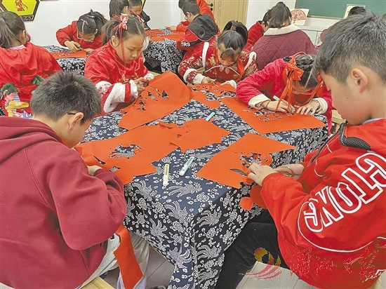 甲辰龙年将至,荔城区第三实验小学开展“巧手剪纸迎新春”活动。同学们用剪刀、刻刀在红纸上创作不同造型的“龙”,寄托美好期盼。 曾程 吴恺敏 摄