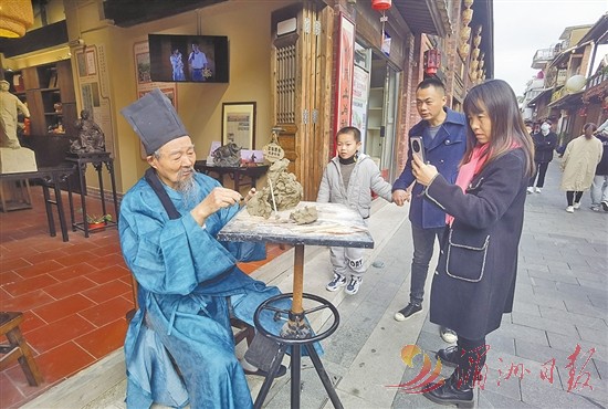 2月3日,在兴化府历史文化街区,我市非物质文化遗产“陈氏工艺雕塑”传承人之一、七旬老人陈国华现场展示泥塑制作过程,让市民游客感受文化遗产的特有魅力。全媒体记者 林英 摄