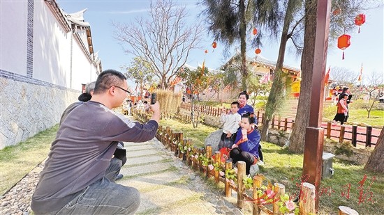 春节元宵期间,湄洲岛迎来大批游客。图为游客身着妈祖服饰在湄洲岛拍照留念。全媒体记者 杨怡玲 摄