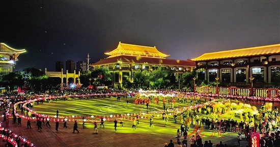 据了解,榜头镇板凳龙圈灯闹元宵习俗源于明代抗倭。当时,面对倭患,村民为了保卫家园,在板凳上装上多盏花灯结队而游,灯连接越多,意味着人丁越兴旺,以声势浩大吓退倭寇,随后逐渐演变成榜头元宵特有习俗。现场还举行舞龙舞狮、莆仙赞句等传统民俗文化表演,大力弘扬中华优秀传统文化和“仙作”工艺。 全媒体记者 陈沛达
