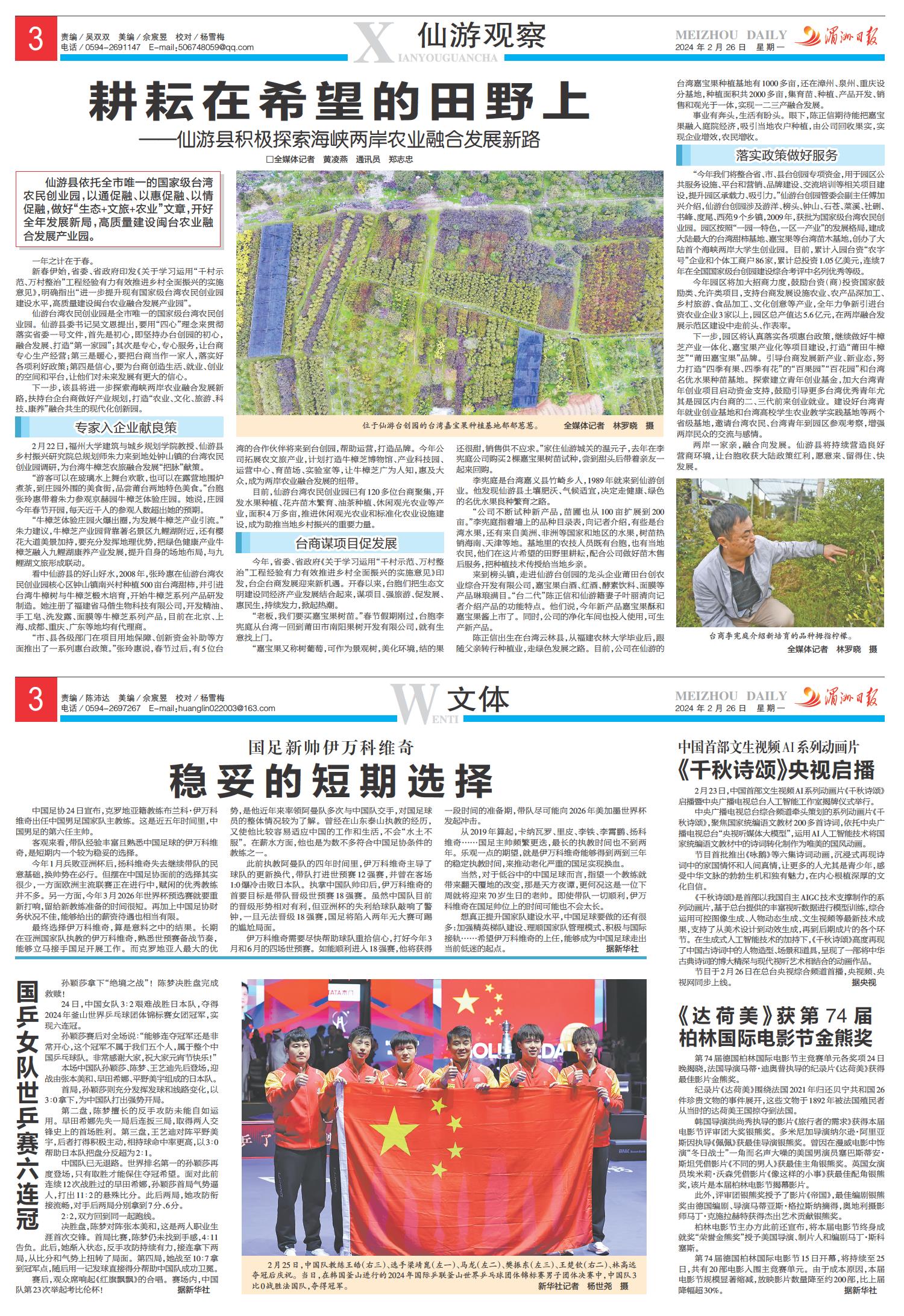 A1 要闻 A2 要闻 A3 仙游观察 文体 A4 国内国际