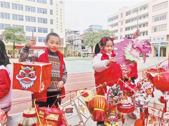 本报讯 2月26日,开学首日,城厢区筱塘小学热闹非凡。校领导身着红色古典服饰,在校门口热情迎接学生返校。学生们提着手作“龙灯”,重归校园(如图)。