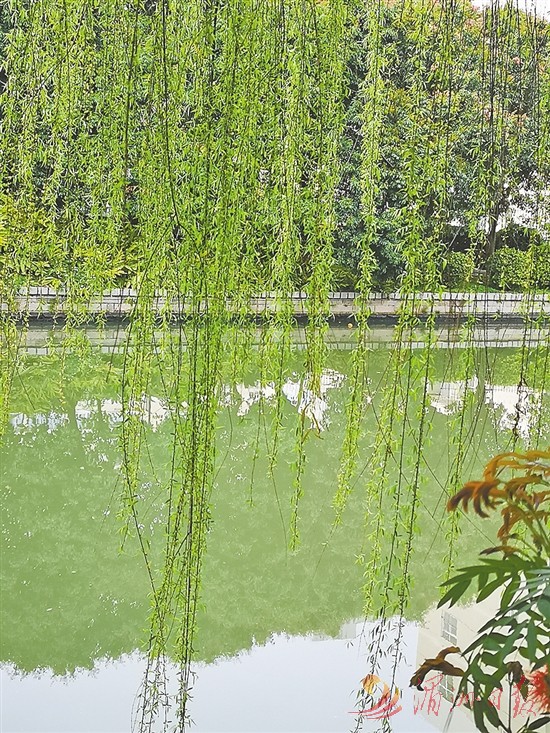 岸边柔嫩的柳叶