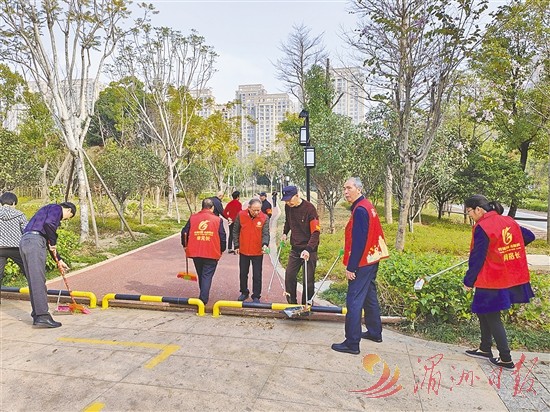 在尚书公园内,志愿者们手拿扫把、笤帚、垃圾夹等清洁工具,对街道、公园路面死角及两侧绿化带里的垃圾进行地毯式清理(如图)。大家热情饱满,充分发扬不怕脏、不怕累的奉献精神,当好城市“美容师”,以实际行动传承雷锋精神。