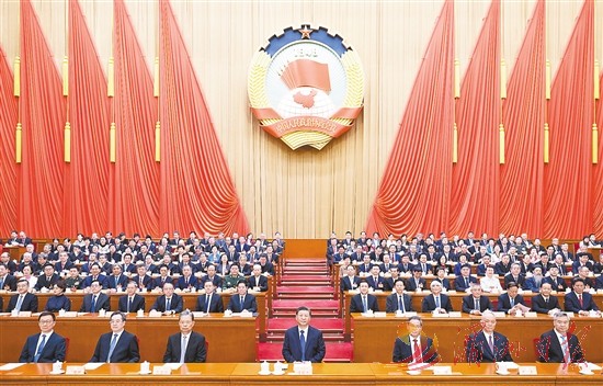 全国政协主席王沪宁主持闭幕会并讲话。 新华社记者 鞠鹏 摄