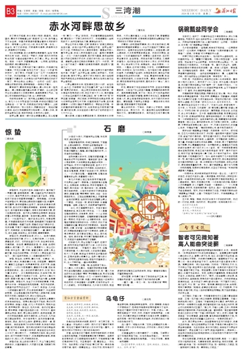 在物质匮乏的岁月,石磨平时都闲置,只是逢年过节才忙碌起来。磨蚕豆做“豆冻”,磨小麦做麦煎,大米和黄豆混合磨做浮菜饼……年节临近,家家户户都要做豆腐,自然少不了石磨,石磨研出的豆汁天然美味,乳白的豆汁,挂在石磨周围,像围了白白的纱巾,特别动人。一次次推动石磨,一圈圈旋舞,石磨流淌着喜爱的谷物,丰富着那个年代。