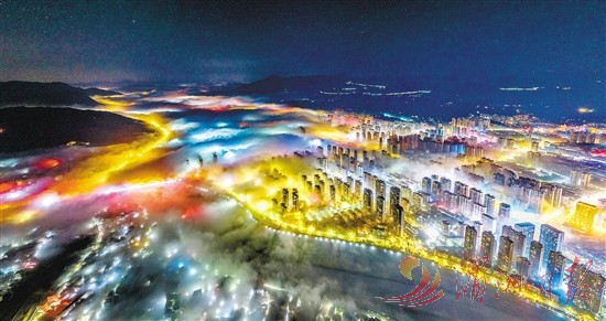 3月12日凌晨,我市城区天空出现平流雾现象。在晨光熹微中,洁白的云雾如同飘逸曼妙的袅袅轻纱萦绕在城市周边,如梦似幻,宛若仙境。