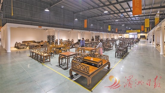 2022年国庆期间,这个红木共享交易中心建成营业。该中心主任蒋玉飞介绍,通过政府指导、产业背书、银行加持、龙头驱动相结合的方式,打造红木消费市场“信任经济”模式,实现共享仓储、展厅、物流和集中管理。同时,为入驻红木家具中小企业提供质量背书、评估鉴定、融资贷款等服务,实现多方共赢。中心还创新新零售营销模式,通过开设线下体验展厅、线上共享商城,形成“红木新零售”。去年,中心销售额达1亿元。