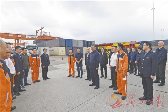 22日下午,习近平首先考察了重庆国际物流枢纽园区。他来到西部陆海新通道重庆无水港运营调度中心,听取新通道建设情况汇报。习近平强调,物流是实体经济的“筋络”。建设西部陆海新通道,对于推动形成“陆海内外联动、东西双向互济”的对外开放格局具有重要意义。各有关方面要齐心协力,把这一标志性项目建设好、运营好,带动西部和内陆地区高水平对外开放。物流园区要积极运用先进技术,不断创新联运模式,提高科学管理水平,在建设现代物流体系中发挥更大作用。