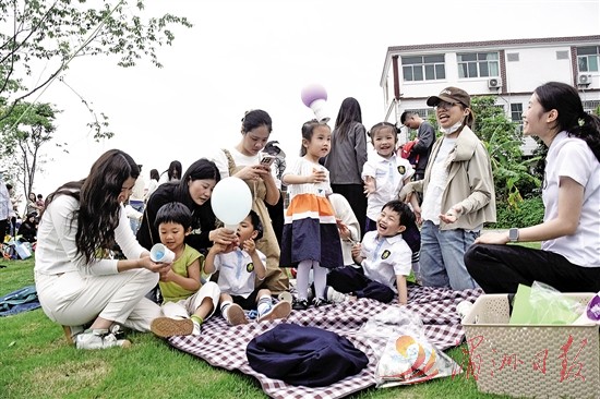 五一节临近,省“金牌旅游村”荔城区西天尾镇北大村游客纷至沓来。图为波斯特幼儿园组织师生、家长走进该村,开展踏青研学活动。全媒体记者 蔡晨晖 摄