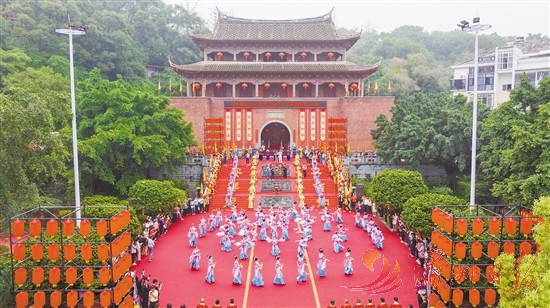 4月23日,中华妈祖文化交流协会2024“妈祖诞”文化系列活动开幕式在市区懿明楼广场举行。图为“春祭妈祖”大典展演现场。
