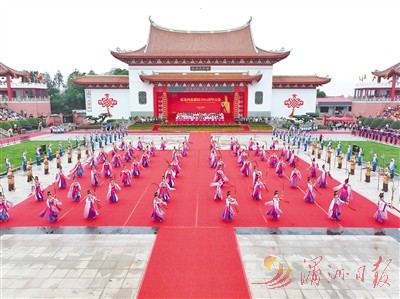 昨日,纪念妈祖诞辰1064周年大会在湄洲妈祖祖庙天后广场举行。图为春祭妈祖典礼现场。 全媒体记者 蔡昊 摄