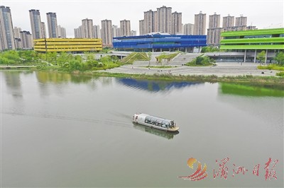 “水上巴士”行驶在玉湖。 全媒体记者 杨怡玲 摄