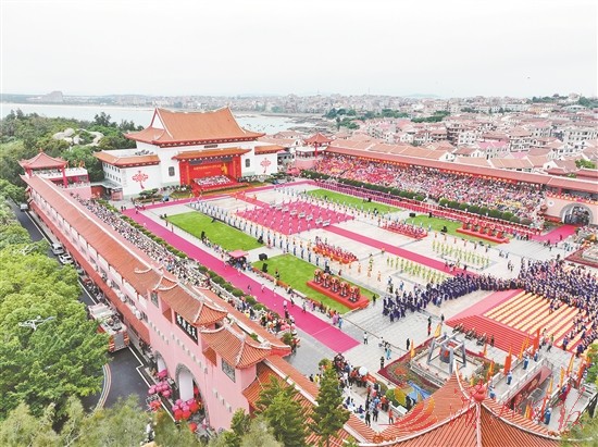 踏歌而行,击浪扬帆。中华妈祖文化交流协会副会长、湄洲妈祖祖庙董事会董事长林金赞表示,祖庙将进一步弘扬“立德、行善、大爱”妈祖精神,立足祖庙,面向世界,与台湾同胞、世界各地妈祖敬仰者,手牵手、心连心,举办更多更有内涵的妈祖文化活动,深入开展两岸妈祖文化交流,努力为建设两岸融合发展示范区作出新贡献。
