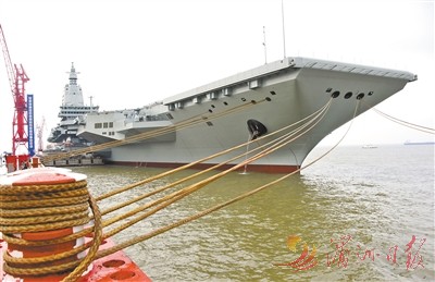 5月1日8时许,我国第三艘航空母舰福建舰从上海江南造船厂码头解缆启航,赴相关海域开展首次航行试验。这是即将从上海江南造船厂码头解缆启航的福建舰。 新华社记者 黎云 摄