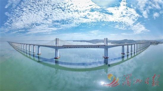 我国首条时速350公里的跨海高铁——福厦高铁自去年9月底开通以来,群众出行更加便捷,为莆田绿色高质量发展提供了有力的交通支撑。图为昨日,复兴号智能动车组列车飞驰在福厦高铁湄洲湾跨海大桥上。全媒体记者 蔡昊 摄