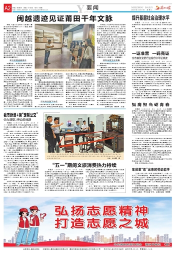 今年“五一”假期恰逢农历三月廿三,湄洲岛举办纪念妈祖诞辰1064周年系列活动,接待游客超10万人次。与此同时,全市各地纷纷推出主题旅游线路,秀屿区南日岛举行“海鲜啤酒节”,仙游县九鲤湖风景区举行九鲤湖九仙文化旅游节,城厢区九龙谷国家森林公园举行五月油桐花告白节,绶溪公园举办“五一”打工人欢乐节等。市文旅局整合全市旅游资源,深入挖掘各景点特色,推出妈祖朝圣之旅、乡村野趣之旅、非遗寻迹之旅等10条旅游线路,让游客深度体验莆田人文风貌和山海之美。
