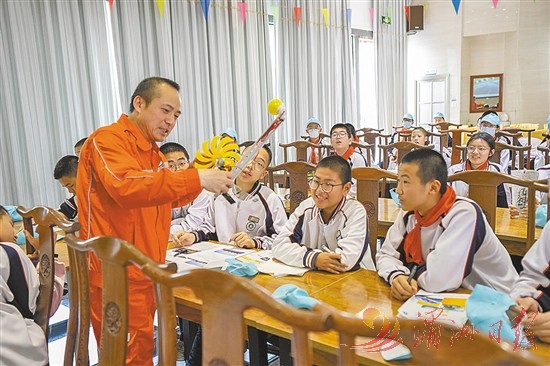 当天,省技能大师工作室领办人、莆田电厂运行部邱奇烨还精心搭建发电小模型,讲解风力发电原理。
