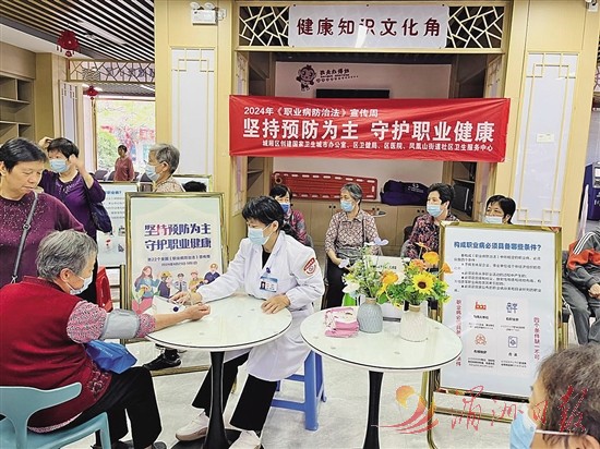 4月25日至5月1日是第22个职业病防治法宣传周。在城厢区创建国家卫生城市办公室、区卫健局的指导下,城厢区医院联合凤凰山街道社区卫生服务中心开展以“坚持预防为主,守护职业健康”为主题的宣传活动,普及职业病防治知识。