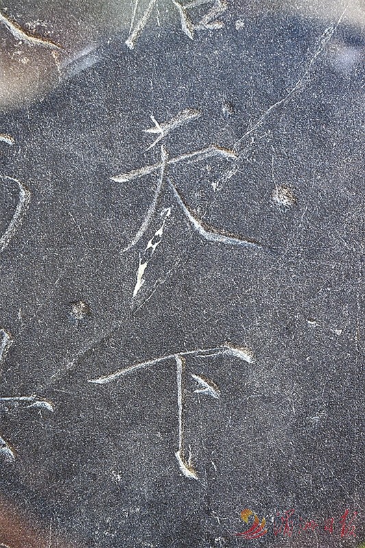 图③:宋徽宗以瘦金体御书的碑铭字迹。 全媒体记者 蔡昊 摄