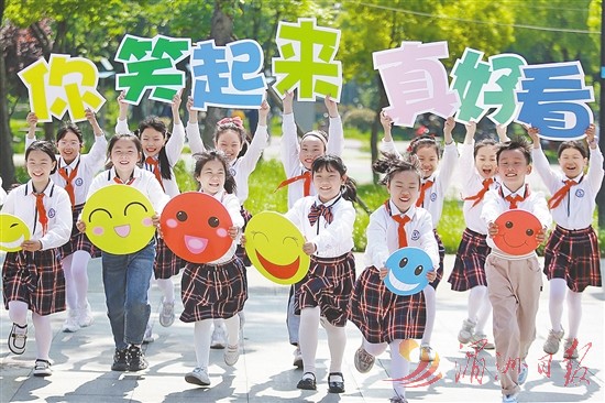 5月8日,江苏省扬州市何园社区的小朋友在“笑迎世界微笑日”活动中手举笑脸卡做游戏。当日是“世界微笑日”。微笑是无声的问候,微笑是人类最美丽的语言。让我们通过微笑,传递爱,汇聚起感染人心的力量。 新华社 发