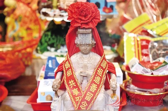 本报讯 (全媒体记者 郑已东 通讯员 程黎婷 文/图)5月2日,翡翠妈祖分灵湄洲妈祖祖庙莆田会馆仪式在祖庙天后宫举行。湄洲妈祖祖庙董事会董事长林金赞、名誉董事长林金榜,祖庙董事会荣誉董事长、上海玉成天赐珠宝有限公司董事长赵柳成,祖庙董事会秘书长李少霞,湄洲妈祖祖庙莆田会馆馆长陈金森等向妈祖行三献礼。