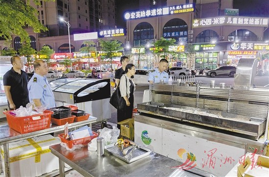 本报讯 随着气温升高,露天烧烤、大排档等户外经营活动增多。为加强夜间监管,持续提高生态环境质量,昨晚,市“点题整治”现场督导帮扶组、市生态环境保护综合执法支队、荔城生态环境局、荔城区城市管理局等采取不打招呼、直奔现场的方式,开展“点题整治”餐饮油烟联合执法检查。