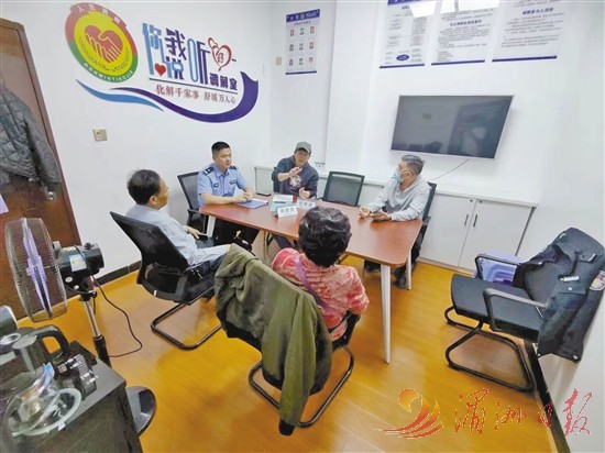“来,喝杯茶,坐下来慢慢谈。”日前,在月塘社区“你说我听”近邻评理调解室,一场邻里纠纷正在调解。经过社区工作人员和凤凰山派出所民警耐心调解,双方达成一致意见,纠纷得以解决。