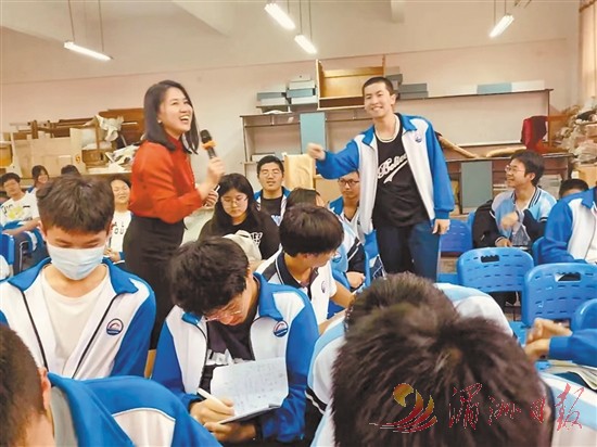 临近高考,莆田四中高三年段教师来到妈祖中学开展校际交流。图为莆田四中蔡英娟老师为妈祖中学高三学子带来高考前心理放松公益讲座。 吴逸萍 摄
