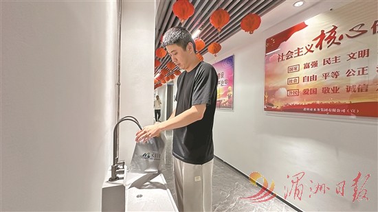 采访期间,该公司员工拿来一次性杯子,邀请记者品尝。拧开水龙头,清水流出,拿杯子一接就可以喝。