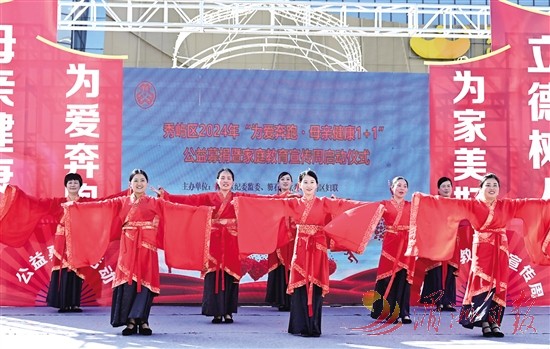 启动仪式上,该区妇联发出“为爱奔跑·母亲健康1+1”公益募捐活动倡议书,各界爱心人士现场募捐;现场为2023年“母亲健康1+1”公益募捐爱心单位代表和2024年“最美家庭”“绿色家庭”代表颁发证书。巾帼志愿者们开展丰富多彩的家庭家教家风文艺表演活动(如图)。