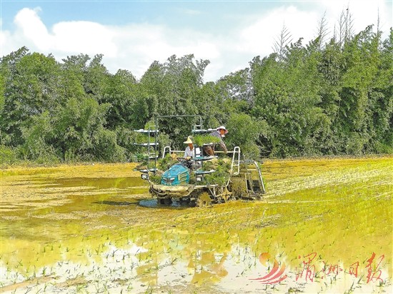 5月中旬,仙游县钟山镇东溪村,在“突突突”的马达声中,农机手张永辉驾驶着高速插秧机进行插秧作业。