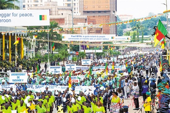 5月20日,学生列队行进在喀麦隆首都雅温得举行的国庆日活动上。当天是喀麦隆国庆日。新华社 发