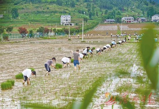 5月21日,贵州省绥阳县旺草中学的学生在稻田里开展插秧劳动。贵州省绥阳县旺草中学将课堂搬到田间地头,让学生们通过农事体验,深刻体会“粒粒皆辛苦”的意义与内涵,感受劳动之美。 新华社 发