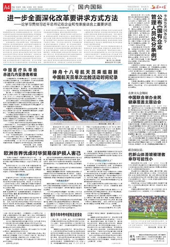 新华社北京5月28日电 (记者 李国利 刘艺)神舟十八号航天员叶光富、李聪、李广苏密切协同,于28日完成首次出舱活动,用时约8.5小时,刷新了中国航天员单次出舱活动时间纪录。