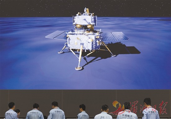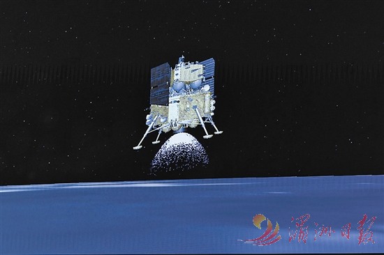 即将到达月面时,发动机关闭,利用缓冲系统保障组合体以自由落体方式到达月面,最终平稳着陆在月球背面南极-艾特肯盆地。