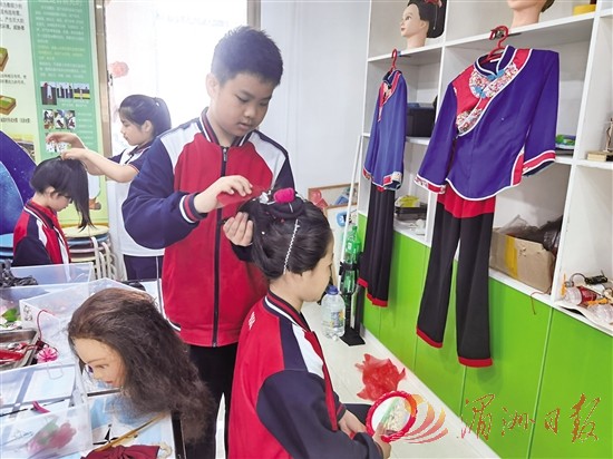 每周四下午最后一节,该校五年级(5)班学生李鑫泽都会来到妈祖髻社团,用头簪、饰花、发卡、发胶等为模特梳发髻。“盘发为海,插簪为桨,青丝做缆,竖髻做帆”,这种湄洲女发髻相传为妈祖所设计,入选第七批省级非物质文化遗产代表性项目名录。