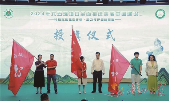 为环保先锋志愿队授旗。