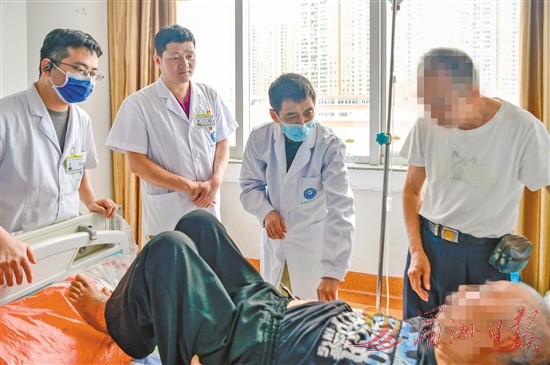 在查房过程中,郭平凡不仅关注患者的病情变化(如图),还对医务人员的临床操作进行了细致指导。他结合丰富的临床经验,从诊断、治疗、护理等方面提出了意见和建议。此外,他还参与手术,在手术过程中对每个环节都严格把控,确保手术安全。