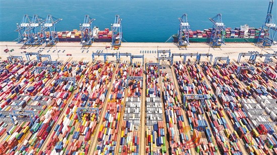 7月3日,在山东港口青岛港全自动化集装箱码头,轮船在停泊作业。近年来,山东省发挥海洋资源丰富的优势,经略海洋、向海图强,积极推进沿海港口一体化改革发展,组建山东省港口集团,着力打造世界级海洋港口群。整合后的山东港口,形成了以青岛港为龙头,日照港、烟台港为两翼,渤海湾港为延展,各板块集团为支撑,众多内陆港为依托的一体化协同发展格局。 新华社记者 郭绪雷 摄