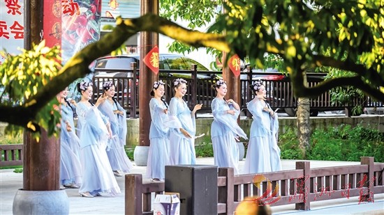 新度镇下横山村结合特色乡土风情,挖掘荔枝文化,探索业态融合发展模式,助推乡村振兴。图为7月6日,该村举办“荔枝王”开摘节,以精彩的文艺表演欢庆丰收。全媒体记者 蔡昊 摄