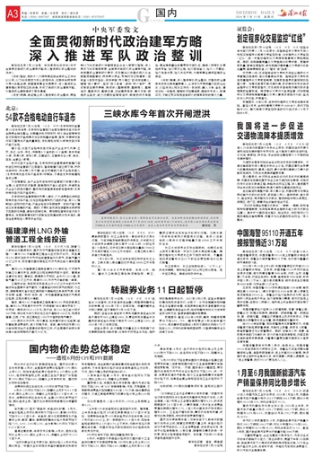 新华社武汉7月10日电 (记者 李思远 张阳)最新预报显示,长江上游未来一周将迎来多次涨水过程。为在洪峰来临前腾出防洪库容,水利部长江水利委员会调度三峡水库于10日14时、18时各开启1个泄洪孔,逐步将三峡水库出库流量由27000立方米每秒增至31000立方米每秒。这是三峡水库今年首次开闸泄洪。