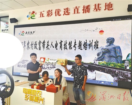 萩芦镇“五彩优选”直播平台助力农产品销售。