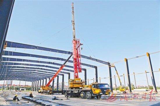 本报讯 数十跨钢结构架拔地而起,120多名工人头顶烈日,抢抓施工黄金期,在机器轰鸣声中忙碌作业。连日来,福建优星欧派项目不惧“烤”验,加紧建设,朝着投产运营的目标快马加鞭(如图)。