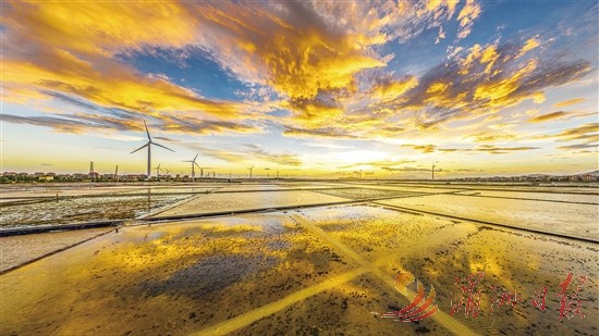 昨日傍晚,莆田盐场,绚丽晚霞倒映在盐池中,美不胜收。