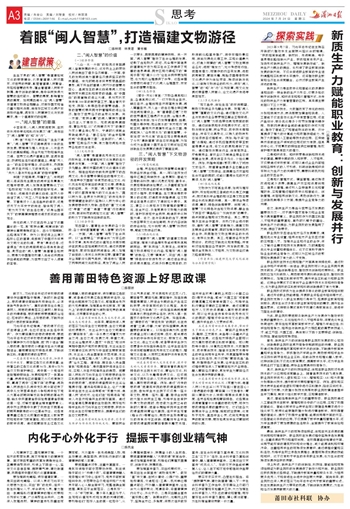 要加强研究阐释,讲好福建故事。一是突出研究阐释。以深入贯彻习近平文化思想为主线,突出“联”的优势,组织一批社科理论人才、学会研究人员,着力推出一批阐释践行福建精神的理论成果和系列评论文章,广泛凝聚社会共识。二是深入挖掘选树。精神的宣传弘扬重在可摸可感。大力宣传一批先进典型人物,用生动事迹、典型案例,讲好践行新时代福建精神的感人故事。