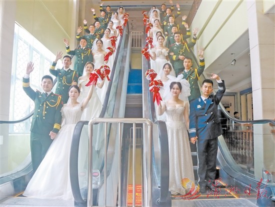 本报讯(全媒体记者 黄国清 通讯员 韩天宝 文/图)8月10日,福建海警局在湄洲岛举办“最‘湄’海岛 携手同行”第六届集体婚礼。26对新人在大海和舰艇的见证下,缔结良缘(如图)。