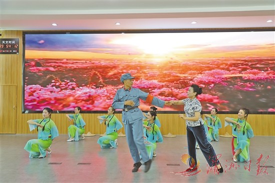 为了给官兵们带来更多的欢乐和温暖,市委老干局组织老干部艺术团献上精彩纷呈的文艺慰问演出。男声小组唱《我爱这蓝色的海洋》以激昂的旋律和深情的歌声表达了对海军战士坚守蓝色国土的赞美,舞蹈《军民鱼水情》用优美的舞姿展现了军民团结一心的深厚情谊(如图),歌伴舞《军人本色》则歌颂了军人的英勇无畏和忠诚担当,舞蹈《中国红九儿》以其独特的艺术魅力,展现了中华儿女的爱国情怀,旗袍舞《江山》,展现了新时代老年人追逐梦想、提升艺术修养的追求。