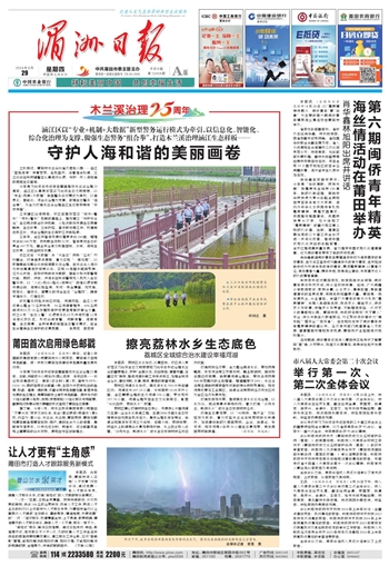 今年是习近平总书记亲自擘画推动木兰溪治理25周年。涵江区认真贯彻落实习近平生态文明思想,以“专业+机制+大数据”新型警务运行模式为牵引,以信息化、智能化、综合化治理为支撑,做强生态警务“组合拳”,为全力打造木兰溪治理涵江生态样板铸牢“平安绿盾”。