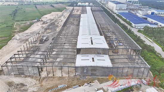 8月26日,在该项目施工现场,160亩钢结构厂房拔地而起,100多名工人头顶烈日,抢抓施工黄金期,在机器轰鸣声中忙碌作业(如图)。该项目计划总投资8.02亿元,占地约320亩,分两期建设,建设内容包括生产车间、综合研发楼、智能配送中心、职工公寓楼及其他配套设施等。